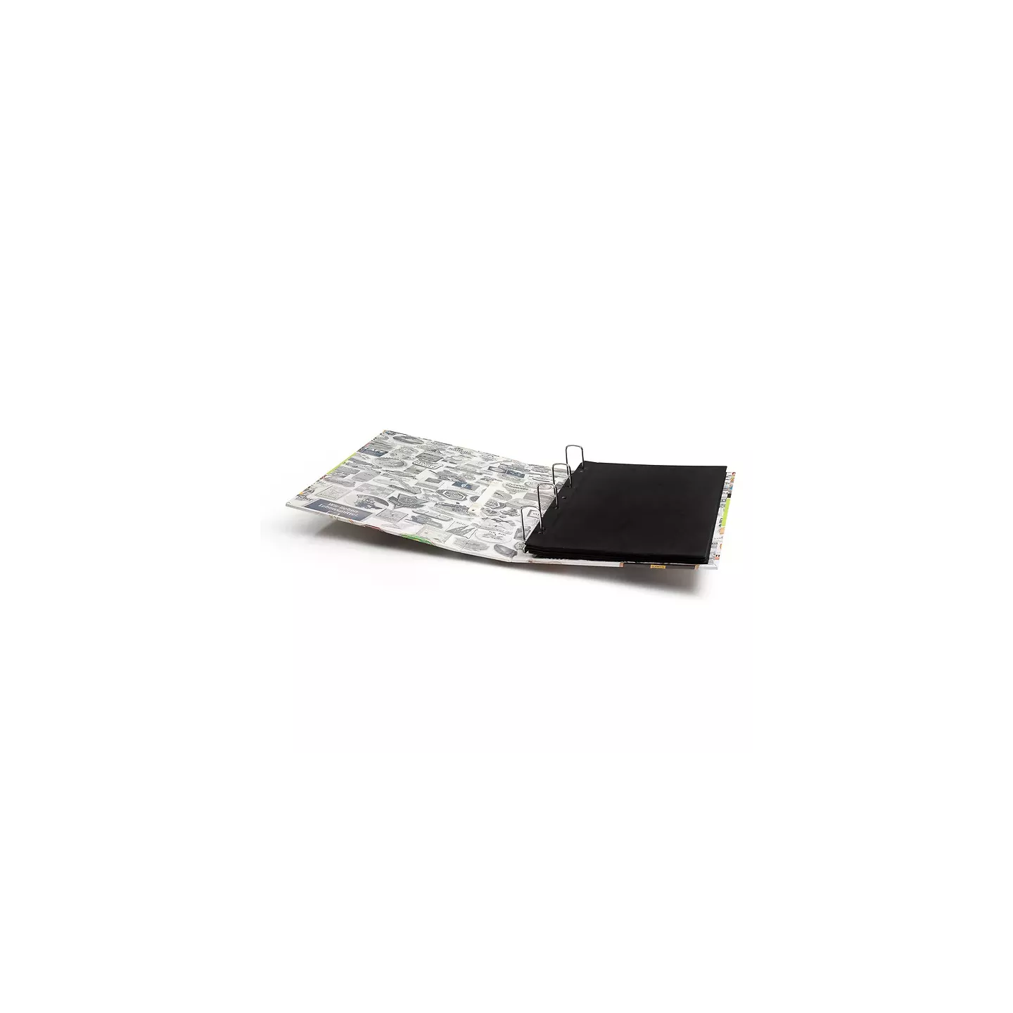Álbum completo con 4 tableros para almacenar de forma segura y atractiva alrededor de 400 chapas, que se puede ampliar añadiendo hasta 4 hojas adicionales (capacidad máxima: 8 tableros/800 chapas). Todos los tableros están cubiertos de terciopelo negro de lujo. Fácil de usar: pegue las chapas a través del tablero y fíjelas desde la parte posterior. La cubierta fácil de limpiar es práctica y resistente. Representa la diversidad de chapas de colores brillantes de todo el mundo. Cuenta con un mecanismo de 4 anillas Q. Tamaño total: 280 x 325 (11 x 12 3/4", GRANDE).