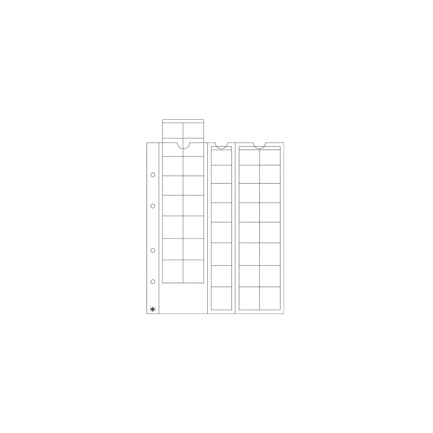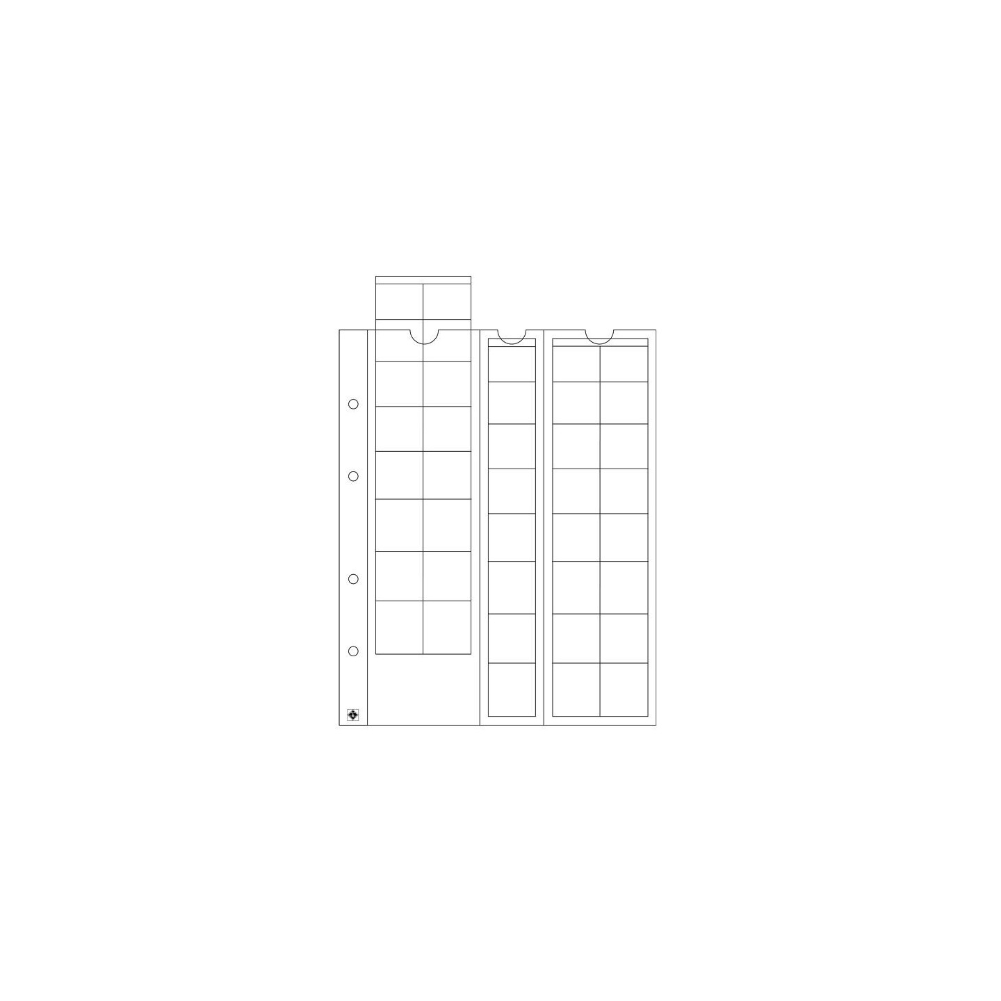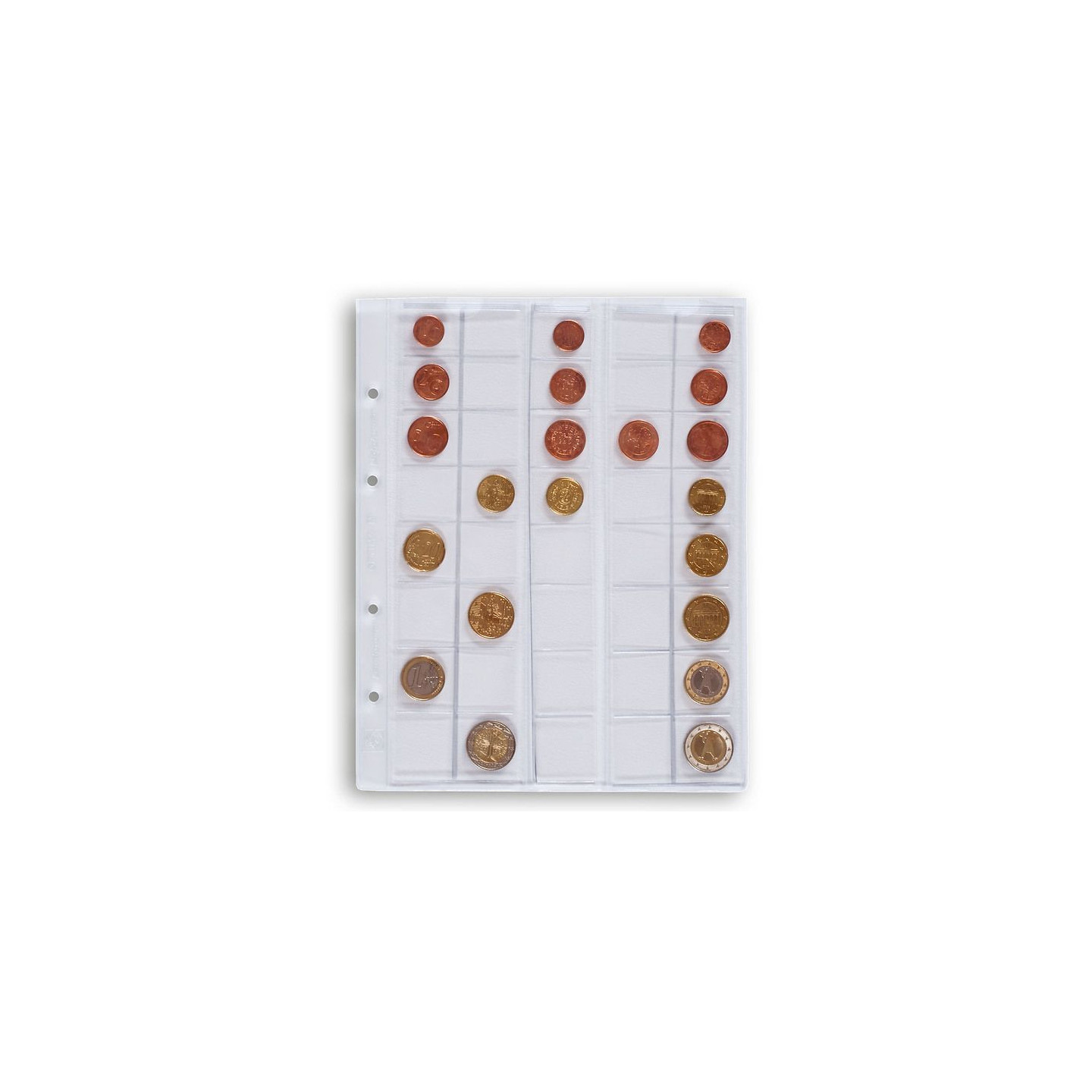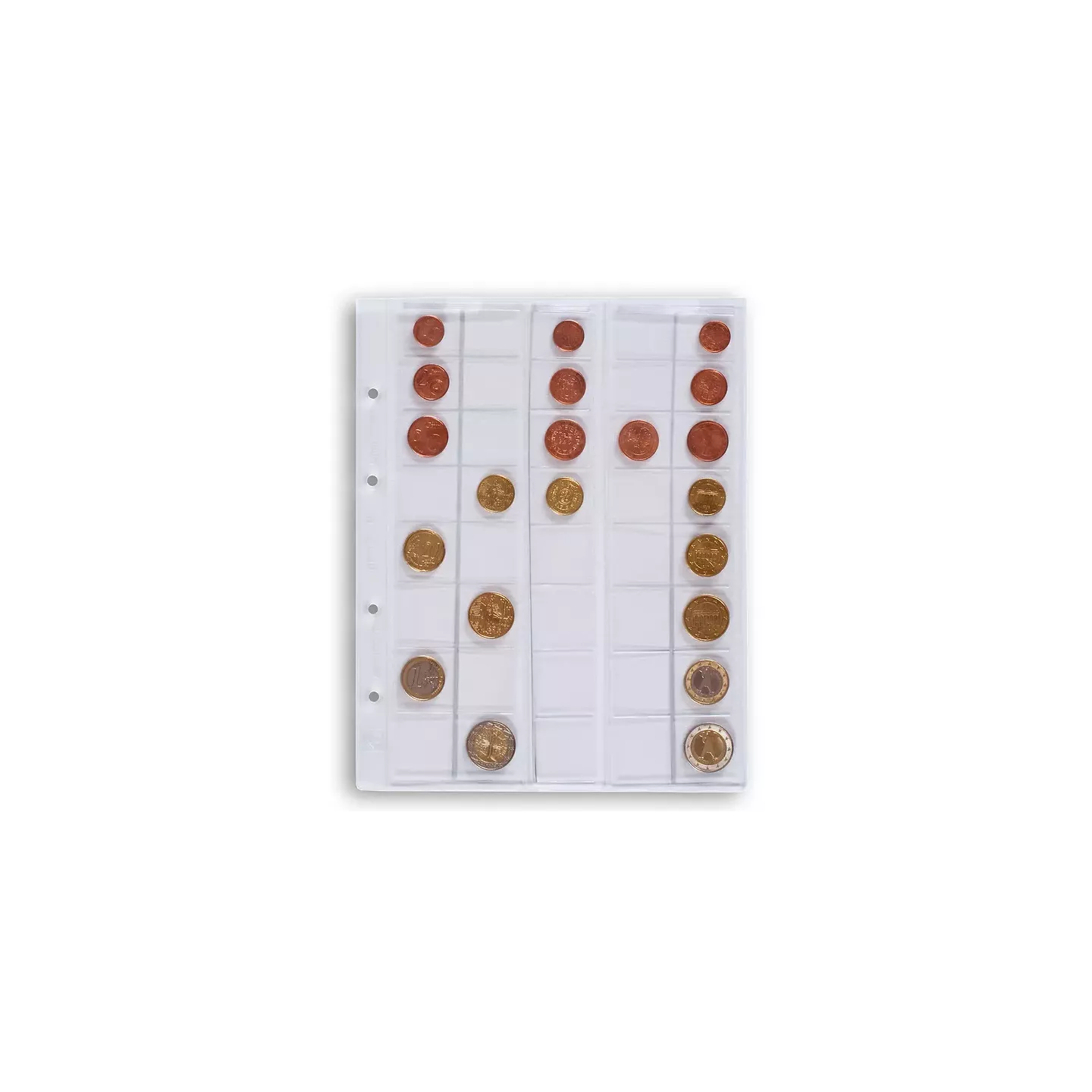 Nuestras fundas para monedas de formato Optima (202 x 252 mm) altamente transparentes y dimensionalmente estables ofrecen espacio para hasta 40 monedas con un diámetro de hasta 26 mm, ideales para juegos de monedas en euros. Estas fundas transparentes tienen compartimentos de diferentes tamaños que no contienen plastificantes ni ácidos y se utilizan para almacenar y presentar de forma segura sus monedas. Hay 8 divisiones para las fundas, las fundas de 50 x 50 mm y 67 x 67 mm están diseñadas especialmente para portamonedas. Para separar contenidos o de forma visual, ofrecemos separadores Optima negros o separadores blancos, que puedes etiquetar individualmente para organizar tu colección.