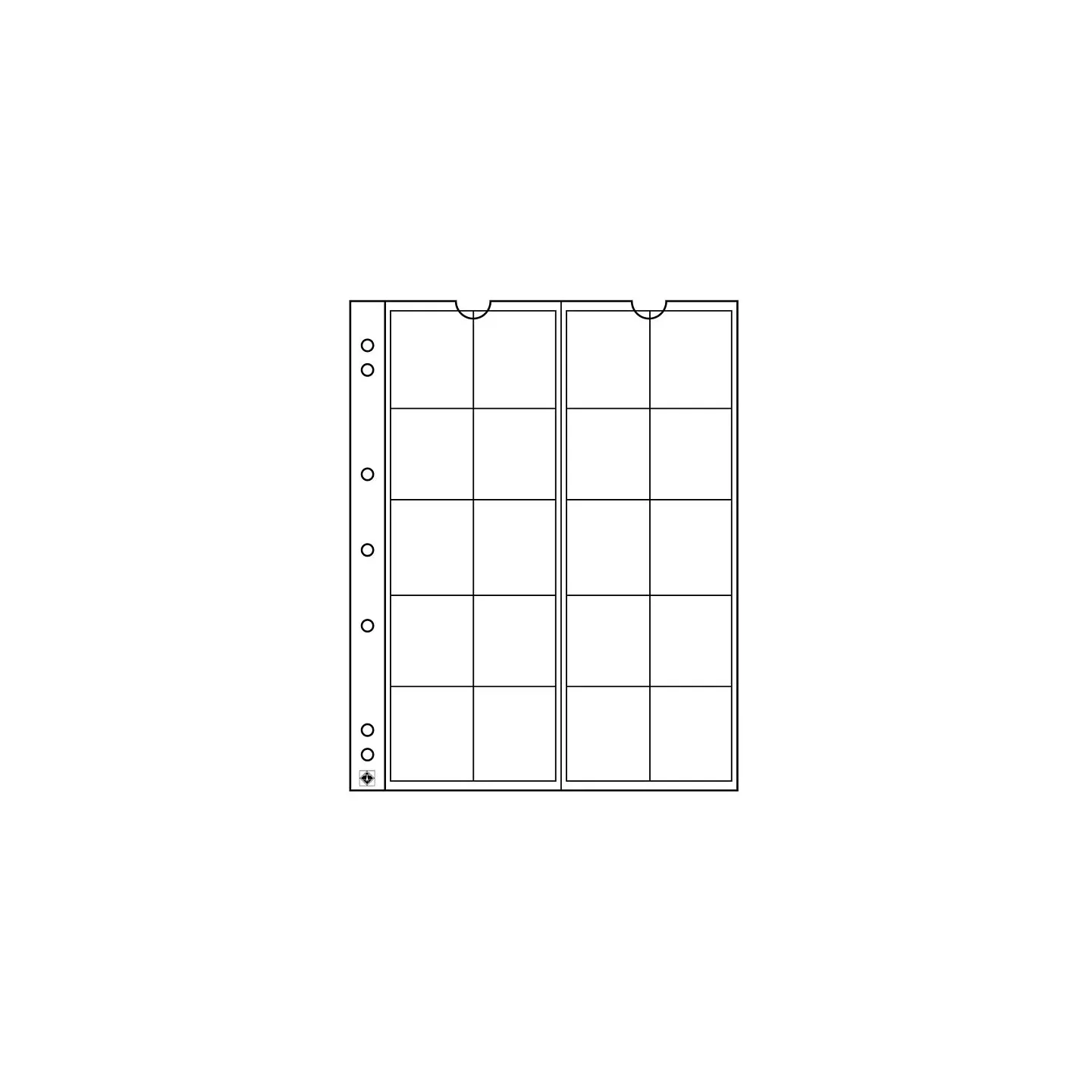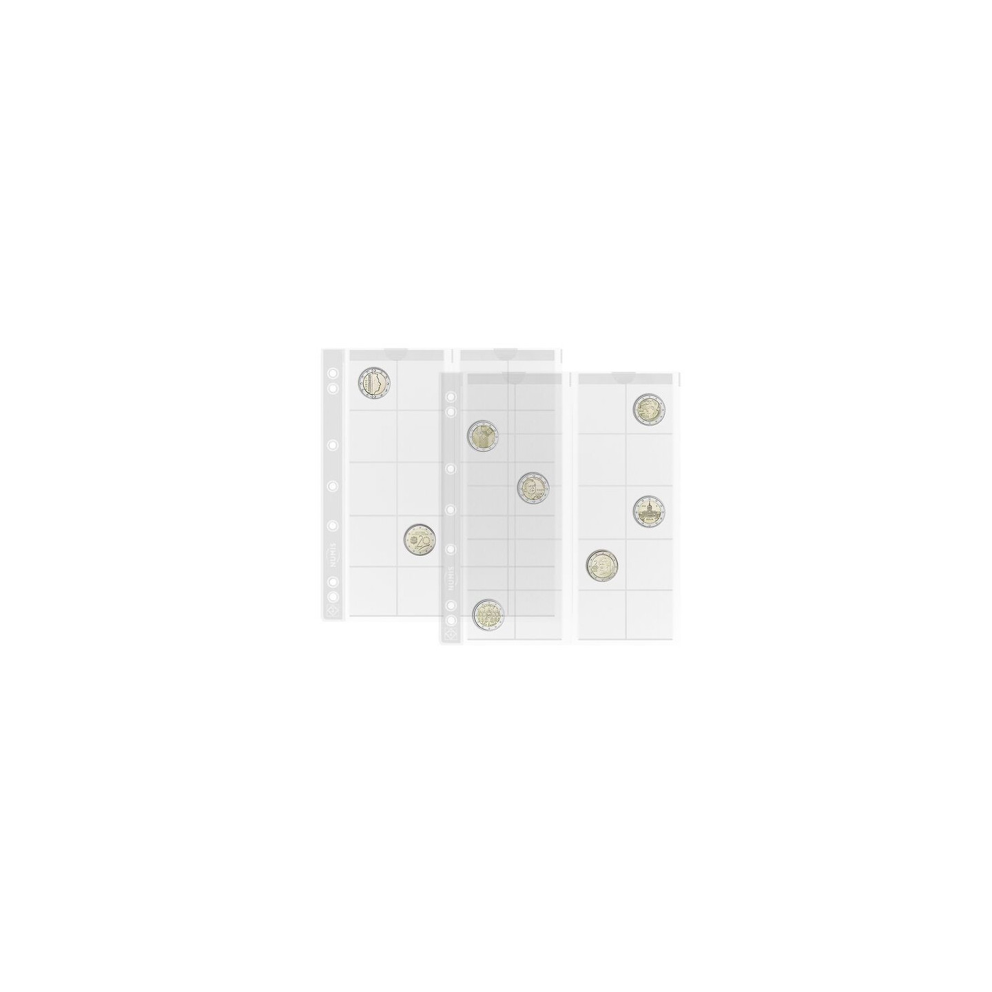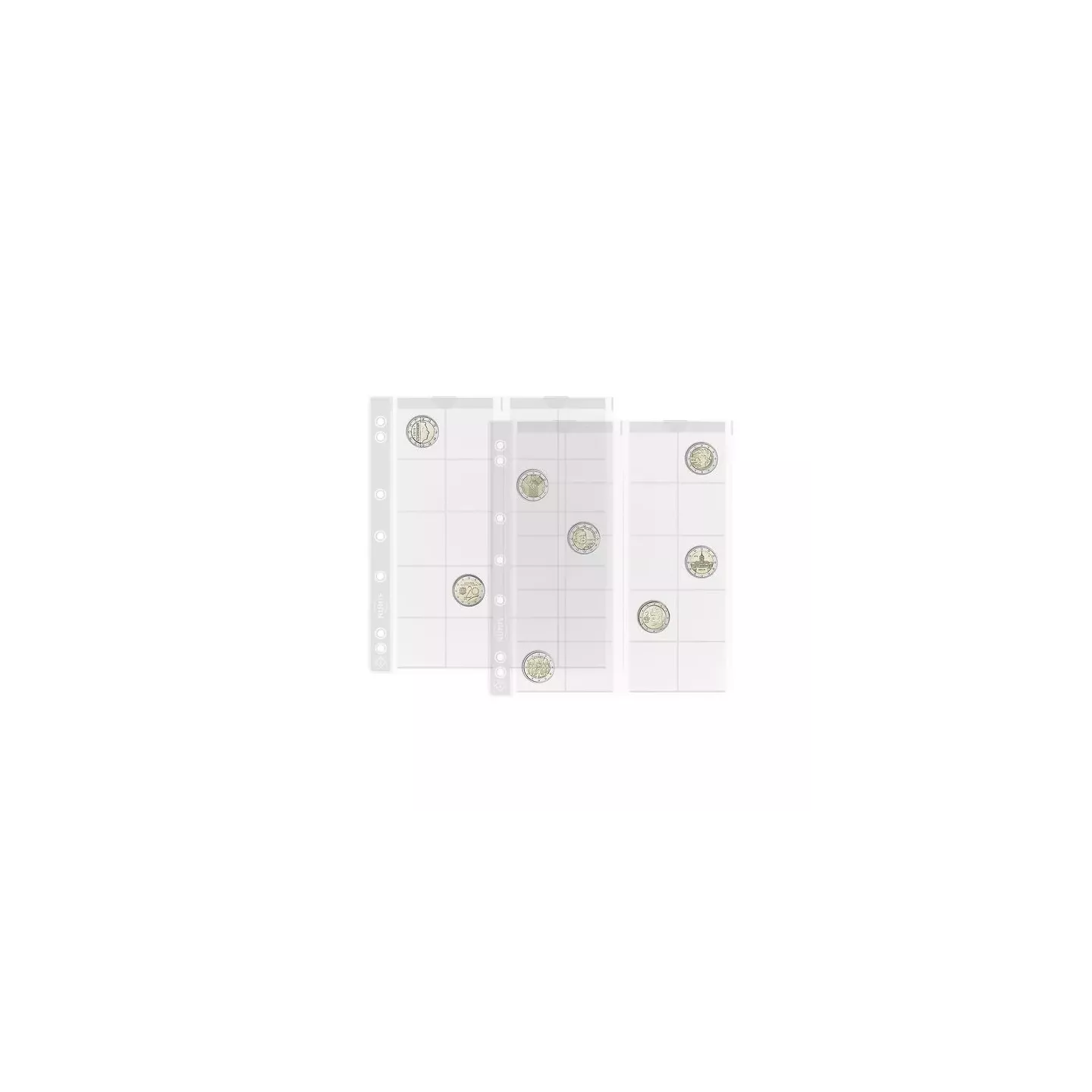 Hojas transparentes para monedas con insertos deslizantes libres de plastificantes y ácidos para guardar sus monedas de forma segura. Tamaño de las hojas: 193 x 217 mm (7 2/3 x 8 1/2"). Con hojas intermedias de cartón blanco.