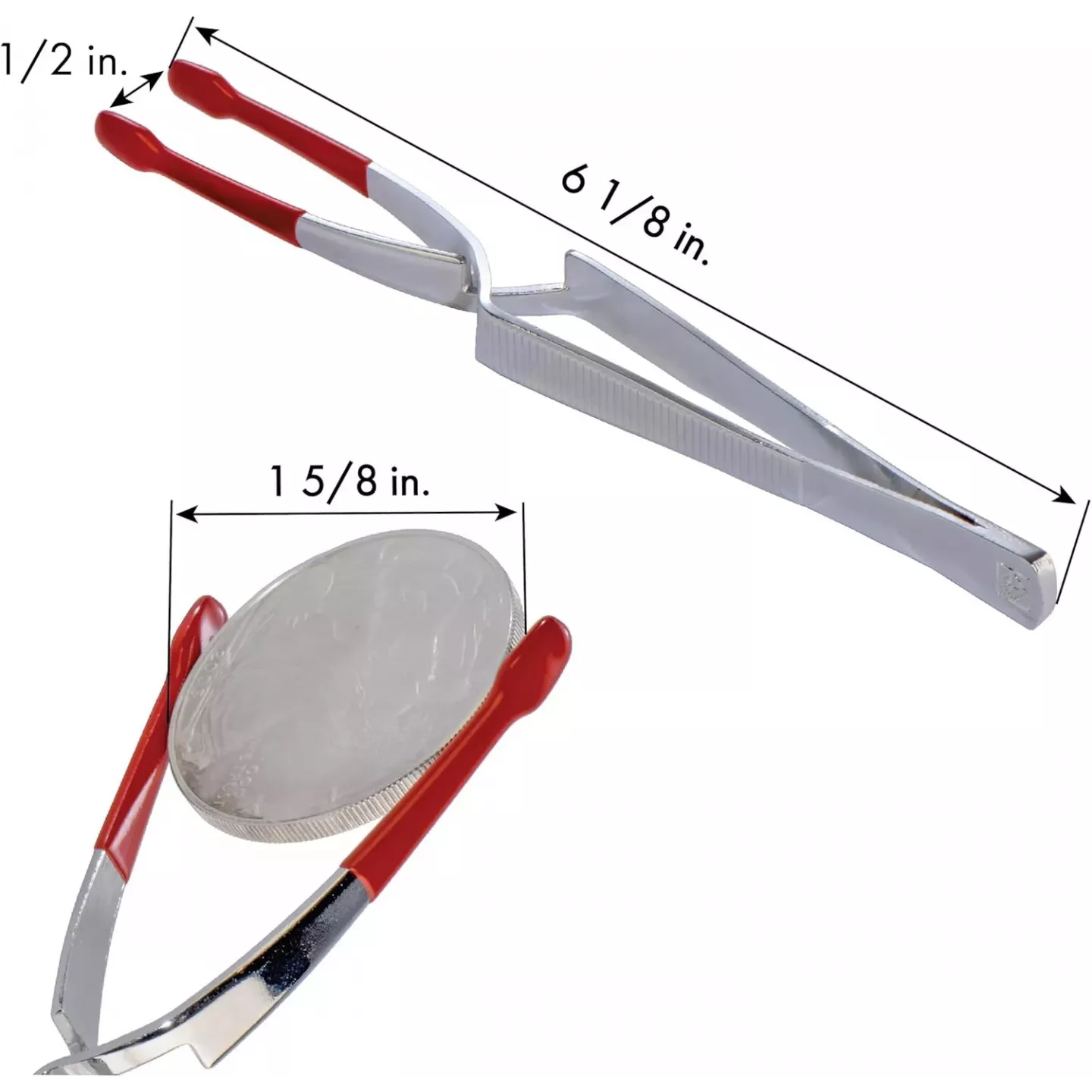 Pinzas para monedas: estas pinzas cuentan con un mango ergonómico y de agarre ancho, que proporciona un excelente control y comodidad para un manejo preciso de monedas de hasta 41 mm.
